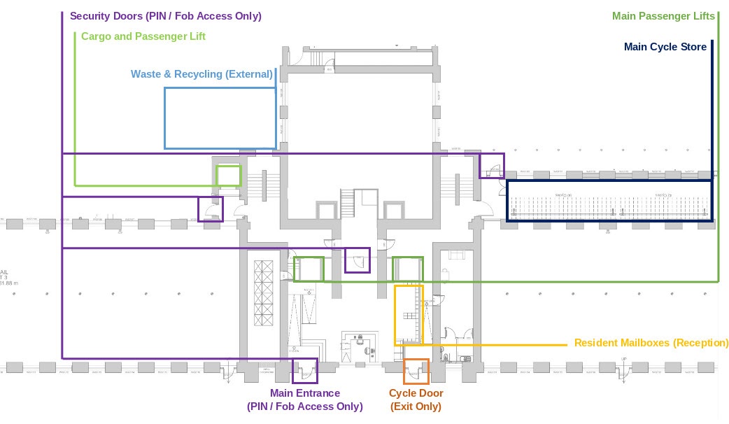 – Secure residential entrance from the car park.